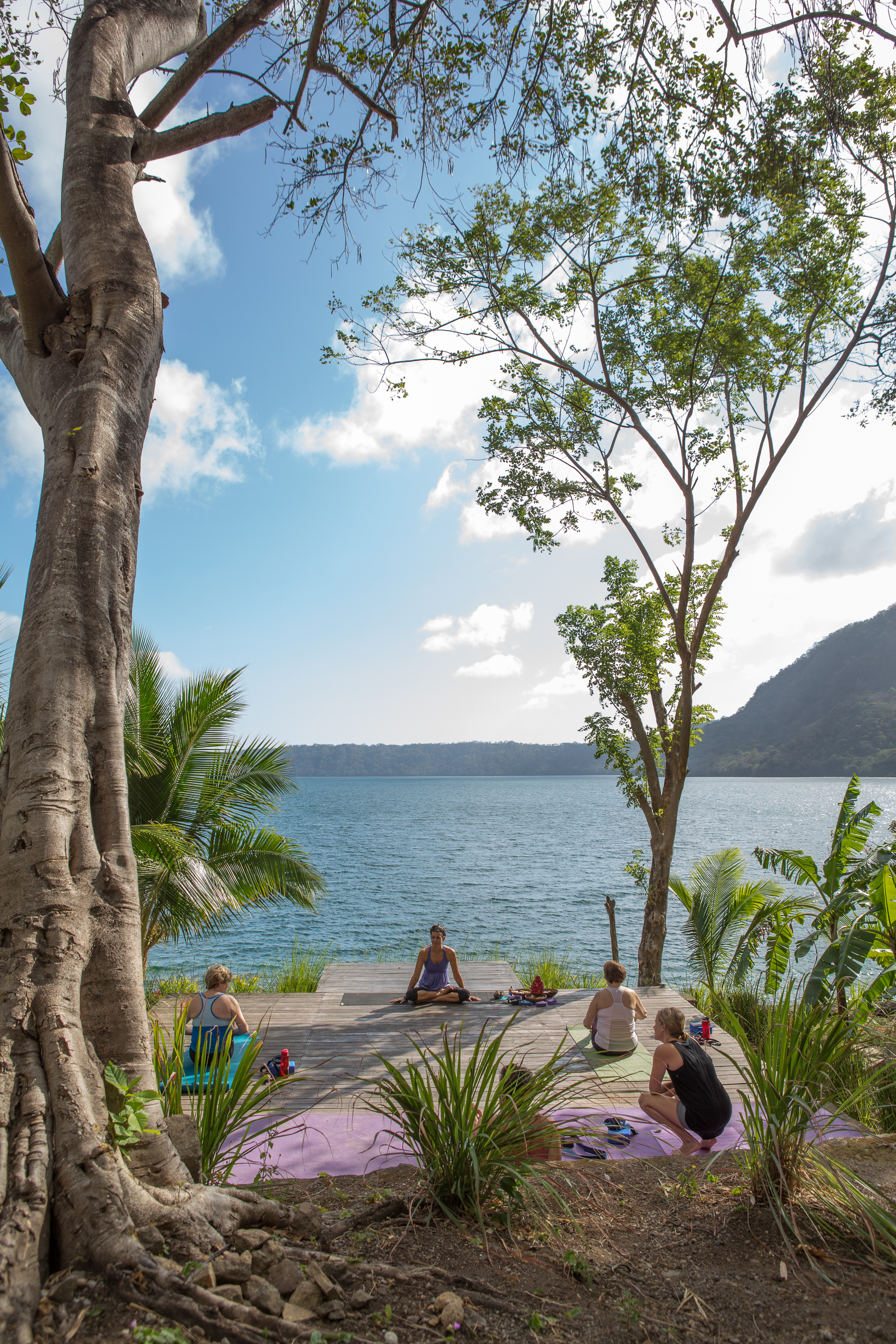 This is me about to guide our morning practice inside a volcano! A moment of beauty captured on a Mother Ship Wild & Wellness Retreat at Apoyo Lodge in Nicaragua 2014.